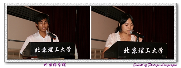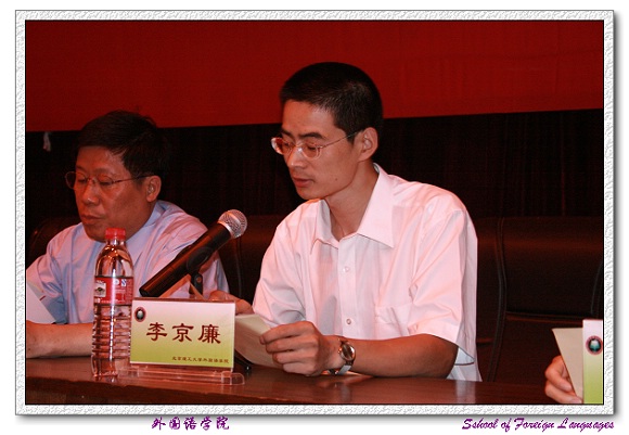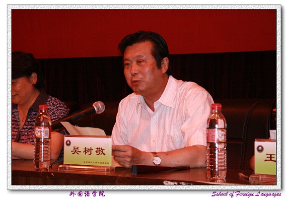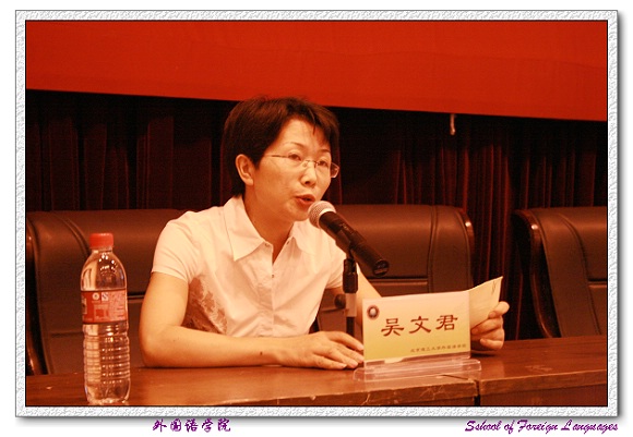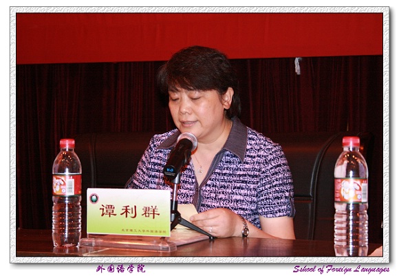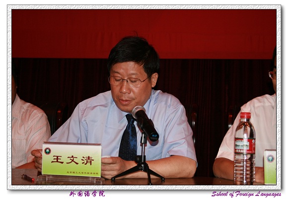 外国语学院党委书记王文清老师首先向2007届毕业生圆满完成学业表示热烈的祝贺,并向培养、教育学生,辛勤耕耘、无私奉献的广大教师致以深深的感谢和敬意!王书记勉励毕业生们要踏实的走向工作岗位,树立良好的团队合作精神,不断学习先进的科学文化知识,发扬艰苦奋斗的精神,努力做一个对祖国、对社会、对人民有贡献的人。