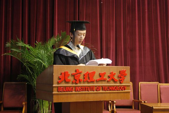 上午九点整,典礼正式开始,信息科学技术学院院长仲顺安老师致开幕词,期间表达了对毕业生由衷的祝贺、殷切的期望和真挚的祝福,并同时宣布了“金牌毕业生毕业生”、“国防科工委优秀毕业生”、“北京市优秀毕业生”名单。