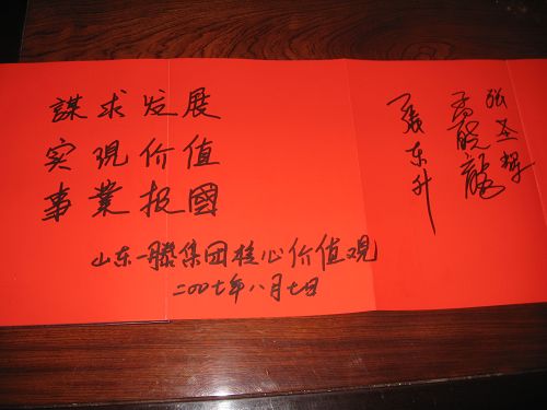 随后,实践团成员参观了办公楼,悬挂在走廊的数百幅企业文化宣传画感染了同学们,透过这些宣传画,同学们看到了一个有远见有谋略的一滕集团。