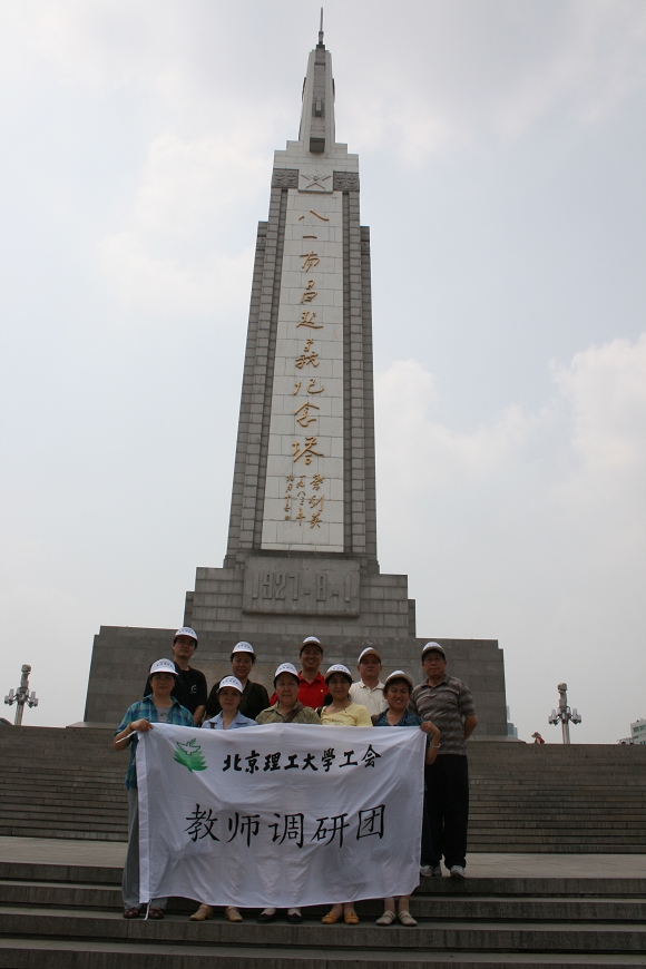 考察组最后来到八一起义的名城-南昌,重点参观了著名的南昌八一起义纪念馆和南昌八一起义纪念碑。南昌八一起义纪念馆于1959年正式建成并对外开放,2007年6月,又进行了修缮工程,以迎接中国人民解放军建军八十周年纪念日的到来。我们的参观团刚好是在修缮后的新馆刚刚开放时踏至。新馆正厅矗立的巨大雕塑十分引人注目:一支步枪顶天立地,枪口正对着的,是一块蓝蓝的天空。它寓意深刻,给人以强烈的震撼力。此次改扩工程按照“修旧如旧”的原则,着力还原当年起义总指挥部——江西大旅社的内部格局和部分室内摆设,让参观者身临其境地感受80年前策划起义的场景。新建成的陈列大楼占地2005平方米,展厅面积3625平方米。陈列大楼共展出文物237件,其中175件首次向公众展示。一楼展厅分“危难中奋起”、“伟大的决策”、“打响第一枪”、“南征下广东”、“转战上井冈”和“八一精神永放光芒”等6个章节,全面展示了南昌起义前后年轻的中国共产党独立探索武装革命道路的艰辛历程。二楼展厅新增了展示中国人民解放军光辉历程的陈列内容,分为“星火燎原”、“抗战先锋”、“解放全国”、“钢铁长城”、“精兵之路”、“科技强军”、“神圣使命”7大部分。重新开放的纪念馆充分运用大型多媒体演示沙盘、等身幻影成像、进入式场景、150度多信道环幕投影等多种现代陈列手段,生动再现了南昌起义和人民军队发展的全过程。1927年8月1日凌晨2时,中国共产党掌握和影响下的2万多北伐军官兵在南昌举行起义,打响了武装反抗国民党反动派的第一枪,中国共产党开始进入创立和建设人民军队、独立领导革命战争的新时期。人民军队从此担当起争取民族独立、人民解放的神圣使命。6年后,经中央革命军事委员会决定、中华苏维埃共和国临时中央政府批准,8月1日成为中国人民革命军队的建军节。由此,南昌成为八一军旗升起的地方。纪念馆展示的内容之丰富细致、手段方法之多样超前令人感叹。这是我们自己的党成长的历史,是党领导的人民军队诞生的地方。回顾历史,我们在感到骄傲和自豪的同时,也深深感到作为新时代的教育工作者所肩负的责任和使命,大家边观看边就内容进行交流,并对许多问题做了深入思考。经过7天紧张而愉快的活动,井冈山考察组圆满地完成了这次社会实践考察任务,于8月13日晚乘Z66次火车离开南昌回京。7天里所参观的红色景点,给予我们的是一次极好的爱国主义和革命传统教育,它给我们精神上以震撼、心灵上以洗礼,启发我们结合现实作了许多认真的思考。