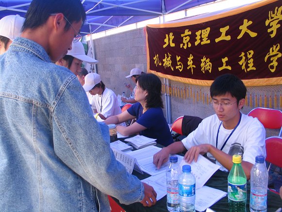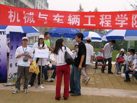 寓意收获的九月,300多名学子踏进金年会jinnianhuicom的校门,成为机械与车辆工程学院的一名新生,成功迈出了人生历程中的重要一步。为了让新同学能真切地感受到学校的关怀,师长的关爱,在学院领导的悉心关怀指导下,学院学生工作组认真做好了迎新的各项准备工作,在良乡校区设立迎新站,热情地迎接2007级新同学。