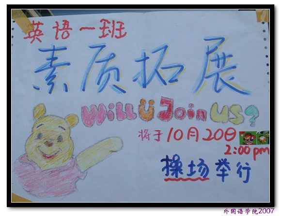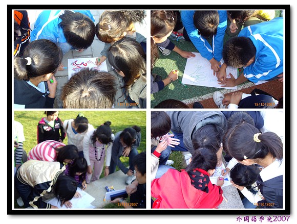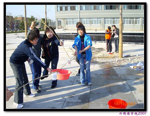2007年10月20日下午2点,在良乡校区的操场主席台下,所有班级的学生集中在一起,经行了分组抽签。外国语学院2007级辅导员张磊老师鼓励同学们充分发挥自己的创造性和想象力,用新颖的创意完成规定的项目。