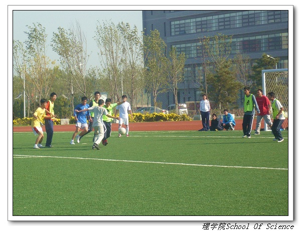 球场上,队员顽强拼搏、勇往直前,球场下,啦啦队员顶着烈日,呐喊助威,这一切都充分体现出了我院奋发向上,勤奋团结的风格,相信07级新同学通过这些比赛将更好的融入大学生活,融入了理学院。
