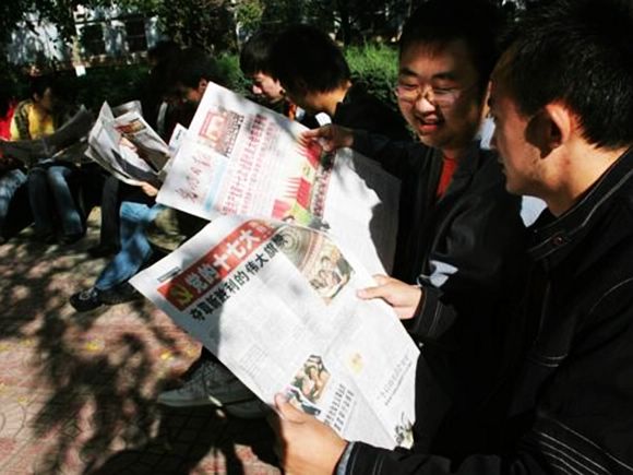 10月16日,宇航科学技术学院05级本科支部的党员和部分积极分子在学校的中心花园进行了十七大精神学习活动。