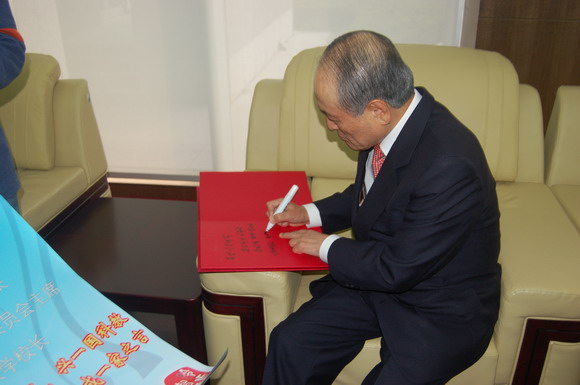 吴校长在贵宾休息室欣然为我校题词留念。