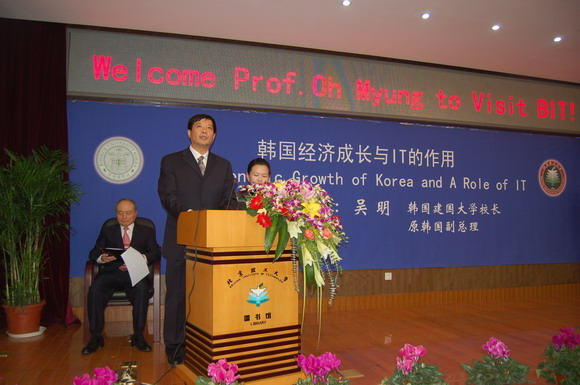 韩国建国大学校长吴明教授应邀来我校作了题为“韩国经济增长与IT的作用”的演讲。吴校长曾担任韩国副总理、韩国科技部部长、韩国邮政部部长、韩国建设交通部部长、韩国大学校长委员会主席、韩国亚洲大学校长等职务。