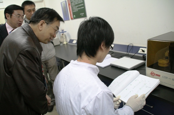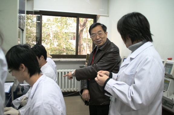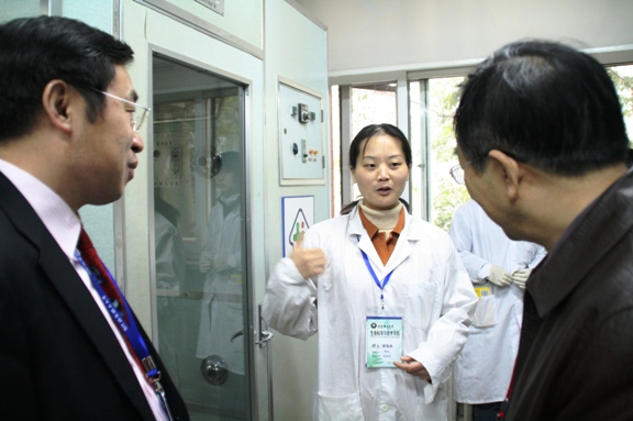 简短的汇报与座谈之后,在学院党政领导的陪同下,傅教授来到我院位于求是楼三层的学院共享实验平台参观,参观了共享平台的细胞生物学实验室,神经生物学实验室,生物分离实验室,实验室教师为评估专家介绍本实验室的基本情况,以及利用实验室现有资源培养大学生实践创新能力和综合素质的基本情况。