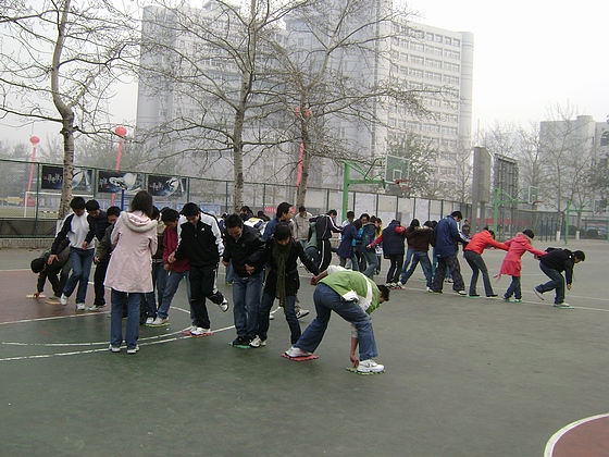 “ 穿越沼泽地”中,同学们充分发挥团队精神,同学间精心配合。各队之间相互比拼,永不服输,即使有的队在配合上出现一些失误,在别的队都通过终点的情况下仍未完成任务但没有人轻言放弃,坚持完成了整个游戏,这种勇不放弃的精神赢得了同学们的热烈掌声。