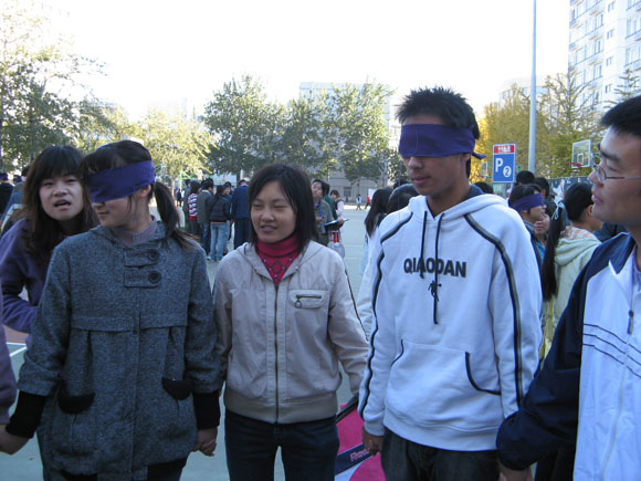 通过参与活动中的“心有千千结”,“摇啊摇”,“穿越沼泽地”等项目,增强了同学们的团队合作意识,锻炼了同学们在团队中的协调合作能力。