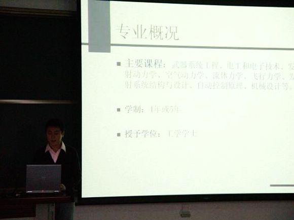 接下来由飞行器动力工程专业第一名张雁同学和同学们一道分享了学习的心得和经验,武器系统与发射工程专业第一名王新光同学讲解了专业前景、保研考研就业等问题。他们都鼓励学弟学妹们认真学习,规划好大学四年的学习生活,在大学里取得精彩的人生。同学们都兴致盎然地聆听,受益匪浅。