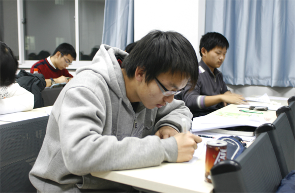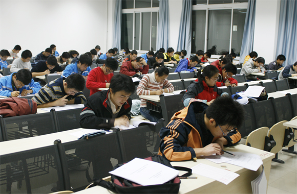 通过第一轮的英语口语筛选,成绩优异的志愿者在当天晚上进行了综合知识测试和心理测试,考试分3个考场同时进行。