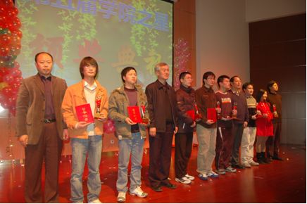 留下青春的轨迹,带走星光的灿烂,播洒星光,照耀大地,温暖人心。12月15日晚七点半,机械与车辆工程学院团员联合会在学院元旦晚会中穿插进行了“学院之星”颁奖典礼。嘉宾主持的一段开场致辞之后,播放了学院之星活动一路走来的宣传DV,主持人一一介绍各个学院之星们的事迹,使得得大一新生们惊叹连连,他们对“学院之星”活动也有了更深的了解。接着,学院之星在观众目光聚集中一一登台亮相。