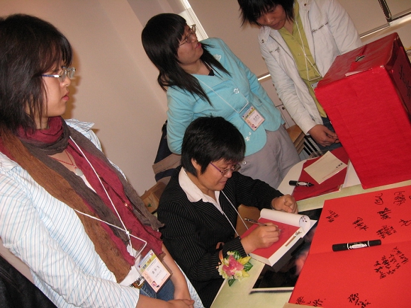 一抵达会场,同学们就为如何设计书摊而紧张忙碌着,在去香港之前,同学们已经就如何卖书筹款的具体事宜进行了讨论和安排,全方位的考虑让我们有更充足的时间将事物做的更好。