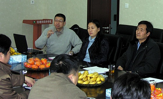 科技处陈杰校长助理,徐文国、陶然副处长等一行五人于2007年12月25日下午2:30到我院对:如何提升学校基础研究水平、如何提高国家自然科学基金、国家社科基金、“973”、“863”计划项目等计划项目的申报积极性和申报成功率;如何加强拔尖人才、创新团队和基地平台建设的意见和建议;对学校目前基础研究管理的建议;对国家自然基金重点、重大项目指南的研讨等几个方面进行调研和指导。