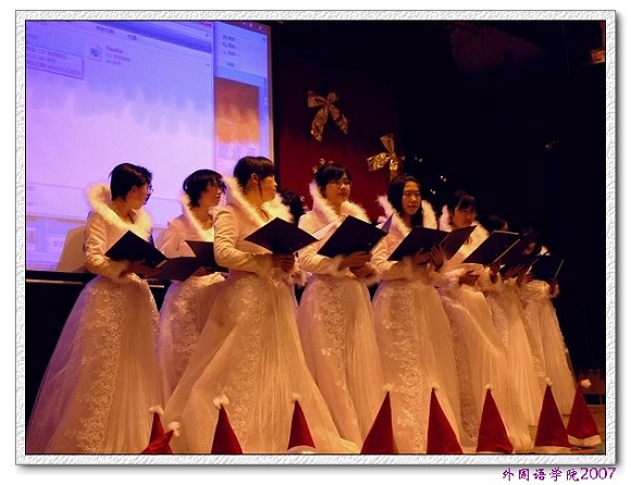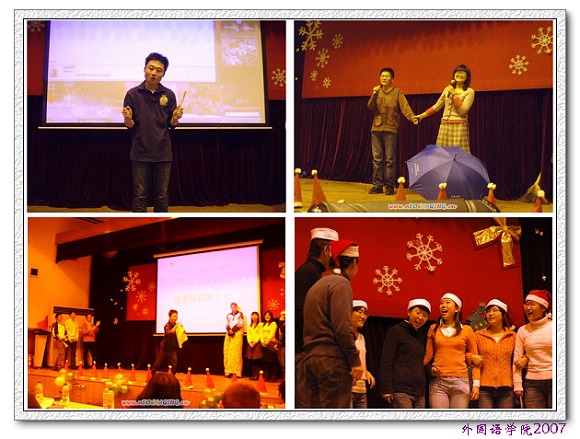在岁末迎新的时候,外国语学院德语系在七号楼报告厅隆重的举行了圣诞晚会。作为德语系传统节目之一,圣诞晚会迄今为止已经举办了5届。本次由2006级德语系学生主办的尤为精彩。