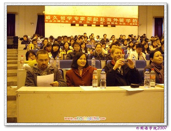 现场气氛高涨。两位外教兴趣盎然。