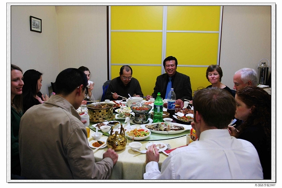 12月24日晚,校国际交流合作处处长王庆林,外国语学院院长吴树敬、院党委书记王文清、副院长李京廉、副院长谭利群等领导与在外国语学院工作的外籍教师共度圣诞前夜。