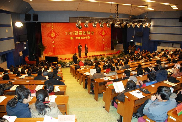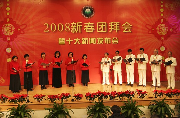 2008年1月25日,我校2008年新春团拜会暨“信息科技杯”十大新闻发布会在中心教学楼报告厅举行,学校领导出席了团拜会,我校师生员工代表、离退休代表参加了团拜会。