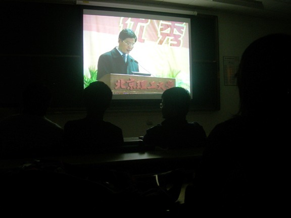 回顾历史,感悟青春岁月。郭惠芝老师首先向全场同学展示了07年“领航奖学金”颁奖专题DV , 获奖同学感人的故事是无悔青春的真实写照,感动在场的每一位同学。