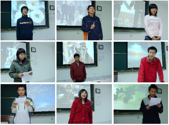 3月21日晚,材料学院材料成型与控制工程班德育答辩开题会在良乡校区综合教学楼A201教室举行,材料成型专业班主任杨彦波,设计艺术学院班主任张学智和材料学院07级辅导员李紫千出席了开题会,材料成型班全体学生参加了本次开题报告。材料成型班的德育答辩打破了传统模式,采取全班同学自由分组的形式,围绕“过去、现在、未来”三个主题进行答辩开题。同学们回顾过去感慨万千,那记忆中模糊的笑脸,见证了他们的欢笑与辛酸的高中生活,那谆谆教诲,辛苦育人的老师,让每个人终生难忘。回忆像一条泛着七彩霞光的丝线,穿起了大家人生最珍贵的回忆!