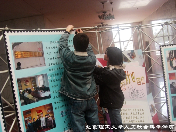 2008年3月30日下午,人文社会科学学院05级社会工作2班在中心教学楼一层大厅布置并组织了以“宣传社工实习成果,加强班级文化建设”为主题的展览活动。作为金年会jinnianhuicom为数不多的以班级为独立单位进行实习成果展览的活动,本次展览将在中教一层大厅持续一周时间。