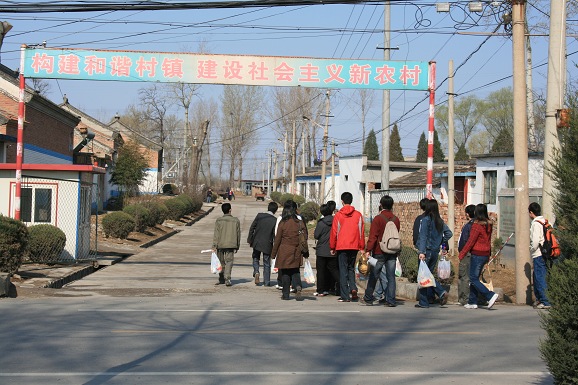 30日一早,风和日历,06120501团支部全体同学在团支书俞锦声同学的带领下在学校北门登车,经过近一小时的车程,于9:30分到达位于顺义区的西王路村。在西王路村村长助理、我校2002级毕业生李岚的带领下,一行人来到西王路村村委会。村委会领导热情地接待了团支部一行,并与学生代表们进行了座谈,村党支部吴书记向同学介绍了当地的经济建设、环境保护、农业发展等情况,并回答了同学的提问。座谈会在轻松和谐的气氛中结束。