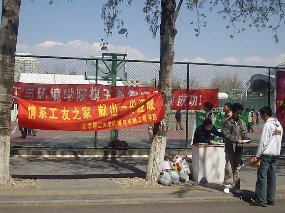 2008年4月2日,机械与车辆工程学院绿风志愿者协会在学校新食堂对面举办了旧衣募捐活动。本次募捐到的所有衣物将捐赠给“工友之家”。