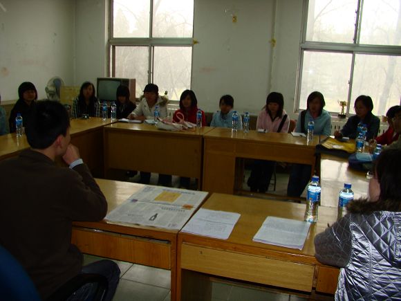 首先,大家在严肃而又不失活跃的气氛中共同学习了十七大精神,讨论了怎样维护民族团结和更好志愿服务奥运等热门话题,分享了个人思想上的感悟。之后,双方交流了各自举办过的活动经验,并对以后的长期合作做了初步规划。