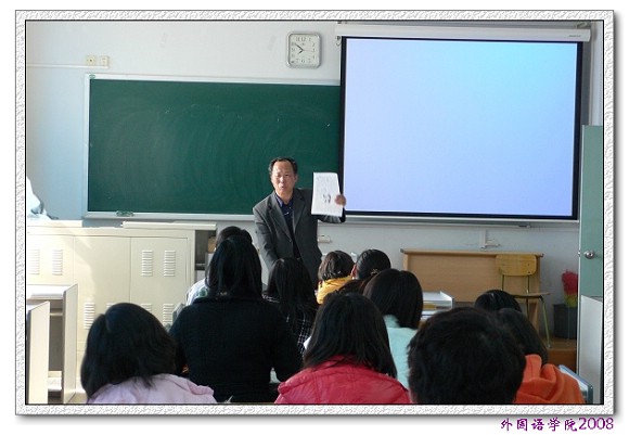 本次讲座围绕现今日本的社会文化展开论述和解析,长期居留日本的汪教授以其风趣幽默诙谐易懂的语言,向在座老师和同学讲述了他在日本生活时的种种经历和见解。他首先以日本某平面媒体对普通消费者在精神和物质生活方面的追求的调查的新闻为切入点,使在座老师和同学对日本当今社会生活的趋势和走向及现代日本人的普遍心理有了更全面到位和更具体深刻的了解和认知;其后他用关于去年三月日本政府公布对日语中敬语的重新分类的指导方针的说明评价和对日本著名权威辞典《广辞苑》最近再版新增一万余条词汇的新闻的介绍,让在座学习日语的老师和同学们了解到了语言作为信息的传播和交流工具不是一成不变而是不断发展与时俱进的这一显著特点。在说明阐述的同时,汪教授以他独特而又幽默的观点和看法,巧妙而浅易的穿插了他在日本生活的经验和教训,深深折服了在座的各位老师和同学。