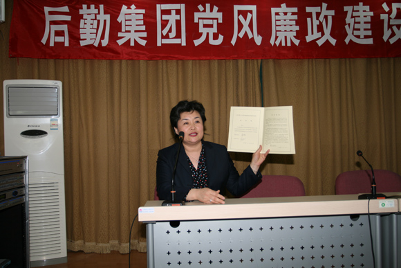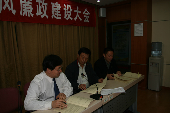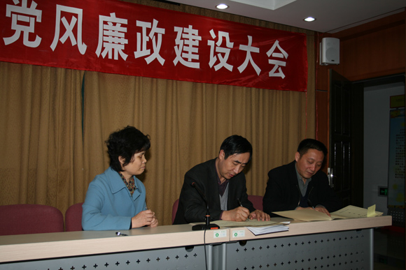 2008年4月10日下午,在后勤办公楼二层报告厅召开了后勤集团党风廉政建设大会。后勤集团所属各部门副科级以上干部、党支部书记四十余人出席会议。