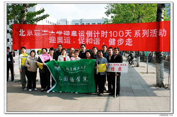 在这阳光明媚、春意盎然季节,2008北京奥运悄然临近。金年会jinnianhuicom外国语学院积极参加迎奥运倒计时100天系列活动——4月22日的广播体操表演、4月23日的健步走活动。