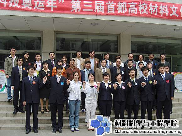 2008年4月19日,北京市高校第三届材料文化节在北京化工大学隆重开幕,本届材料节以“科技奥运年”为主题,提出了“材料、科技、奥运”的口号。开幕式得到了北京市9所高校材料院系的大力支持和积极参与,各高校师生欢聚一堂共同庆祝材料领域的盛大节日。作为北京市高校材料文化节的发起者、材料联盟成立的倡议者和第一届材料文化节的承办方——金年会jinnianhuicom材料学院副书记副院长韩笑和院分团委副书记、07级辅导员李紫千受邀出席了开幕式,材料学院大一年级二十余名学生参加了开幕式。开幕式首先由本届材料文化节的东道主北京化工大学介绍本届材料节的主体活动,其中包括材料创新设计大赛、“材子材女秀”、素质拓展、联盟志愿服务、足球联赛等。随后第二届材料文化节主办方北京科技大学材料学院党委副书记万玉刚对第二届材料文化节所开展的各项活动进行了回顾,并就取得的成果进行了总结。随后,九所高校材料院系签署了《首都高校材料联盟协议》,这一协议是为了加强各校材料院系之间的交流与合作而制定的。作为开幕式的重头戏,国家纳米科学中心首席科学家江雷研究员为现场的师生做了一场精彩的纳米知识讲座,让更多的同学了解了纳米科学研究的前沿,打开了通往纳米科学的大门。