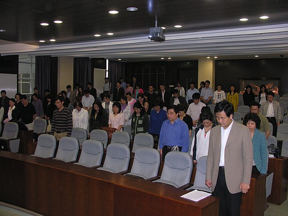 会议一开始,全院教职工全体起立,为在汶川大地震中遇难同胞默哀一分钟。管理与经济学院党委书记李波说,在学校党委和行政的领导下,学院及时组织了捐款,全院教职工积极响应,慷慨解囊,有的教师在国外访问、在外出差都打回电话,让家里人把捐款交到学院,向灾区人民献上自己的爱心;学院还及时对全院教职工、学生进行普查,发现来自灾区的学生12名,他们的家庭无伤亡,学院及时看望了这些学生。