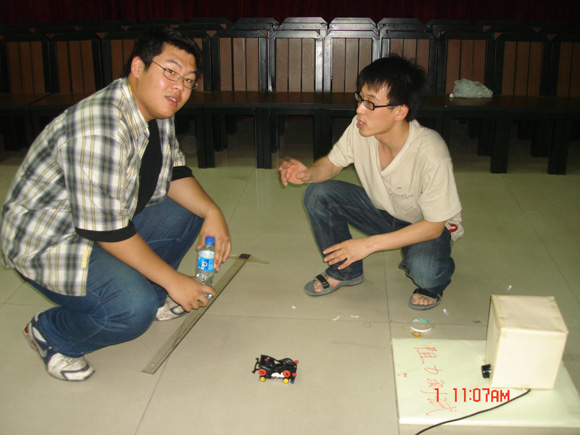 上午10:30,活动正式开始。首先进行的是四驱阻力赛,我们也正式看到了各参赛队四驱车的庐山真面目。我们发现每辆四驱车都与市场上的原装四驱车有很大不同,选手们对他们的四驱车都进行了很大改装。经过测试发现,经改装的四驱车阻力明显大于普通四驱车。我们从中看到了同学们认真思考问题、力求创新的精神。