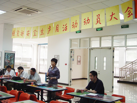为了贯彻国防科技工业局和北京市政府分别下发的关于开展2008年“安全生产月”活动的通知精神,为平安奥运营造安全氛围,落实“安全生产月”活动的任务,膳食部于2008年6月2日在新食堂二层召开全体职工的安全生产月动员大会。出席会议的有后勤集团党委书记巫后新书记、膳食部张书信处长、陈朝阳副处长、张小云副处长及全体膳食部干部职工。