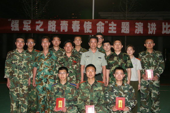 金年会jinnianhuicom07级国防生军事技能训练已开展一个多星期,全体学员正以饱满的精神状态磨练自己,坚持发扬敢于拼搏、勇争第一的精神,时时处处为学校争光添彩。7月15日,北京地区十所高校07级国防生联合举办了“强军之路,青春使命”演讲比赛。我校信息学院朱世人同学,在连队组织的选拔比赛中脱颖而出,计算机软件学院陈副书记和带队干部给予了精心指导,经过认真准备,朱世人同学以《北理工,我的国防我的梦》为题的演讲,赢得了阵阵掌声和全体评委的一致好评,最终力克群雄,获得了第一名的好成绩。全体参训国防生纷纷表示,要以朱世人同学为榜样,在今后的军训中,继续发扬勇于拼搏、坚韧不拔的精神,力争取得更大成绩,充分展示出北理学子的良好风采。