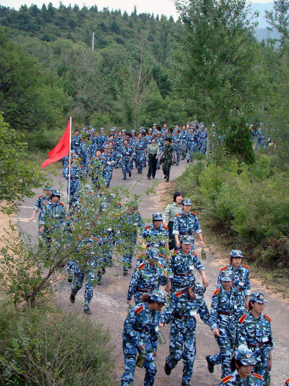 根据2007级、2008级军训学生作息时间安排,2007级、2008级参训师生分别于7点、8点从八达岭学生军训基地出发。早晨,天公作美,下起了蒙蒙细雨,天气格外凉爽,参训师生在雨中进行了3公里左右的平地行军后,攀越了海拔高约600米的老鸹山口,途经程家窑、小泥河、新宝庄、小浮坨等村庄,全程14公里,至12点30分左右全部返回基地。整个拉练过程中,全体参训学员冒雨前进,士气高昂,精神抖擞,圆满完成了此次拉练行军任务,体现了军训旅全体学员不怕吃苦、顽强作战的精神。