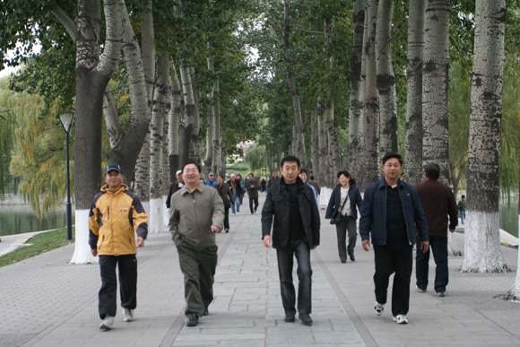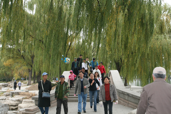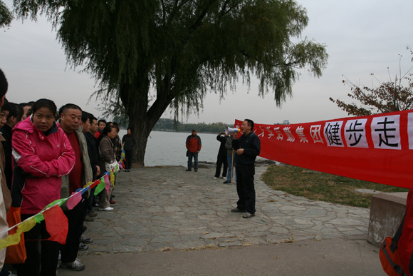 天气的寒冷无法阻挡后勤员工参加工会活动的热情。八点刚过,在玉渊潭公园的西门外,已经是人头攒动,前来参加“秋季健步走活动”的运动员们已聚集在公园门口。