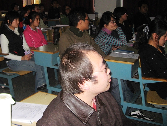 2008年11月22号,由于考试周的关系,课程推迟了一周,但是仍然不影响同学们对CG课程的热情。中教405活动如期举行。开始的时候,CG(事业启航)课程的组长郭强大哥插播了一段题外话。上海商学院刚好发生了一起震惊全国的火灾事件,对于这件事,郭强大哥感慨很深,他告诉我们,在遇到灾难时,要首先学会自救,盲目的救人只会让自己和别人都失去了求生的机会。同时他也告诉了我们许多遇到火灾时的求生技巧。