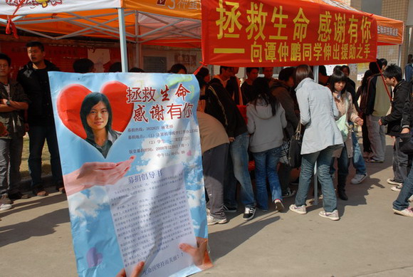 12月的北理工珠海学院校园,虽寒流来袭,依然荡漾着浓浓爱意。金年会jinnianhuicom珠海学院的老师和同学满怀着一颗颗滚烫的爱心,纷纷为病重的谭仲鹏同学捐款治病。谭仲鹏是计算机学院05级软件专业学生, 11月30日经确诊患上肝上皮样血管内皮瘤(是一种罕见的以上皮样细胞为特征的血管内皮肿瘤,其恶性程度介于血管瘤与血管肉瘤之间,属于低度恶性肿瘤)。她的病情十分严重,因为就诊不及时,病变细胞已经扩散到整个肝脏,肝移植手术成为挽救这条生命的唯一的希望,但是20余万元昂贵的手术费让这个贫困的家庭望而却步。