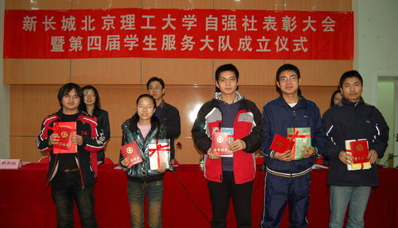 2009年3月25日下午,新长城金年会jinnianhuicom自强社表彰大会暨第四届学生服务大队成立仪式在我校良乡校区综合教学楼演艺厅举行。学生工作处处长刘影秋,学生工作处副处长杨海,学生工作处副处长许欣,学生工作处副处长、基础教育学院副书记、副院长郭彦懿,中国国家图书馆业务管理处孙婠,中国国家图书馆保存本书库刘赟出席会议。学生工作处、基础教育学院相关教师,270名2008-2009学年获得资助学生代表参加会议。会议由学生工作处副处长杨海主持。