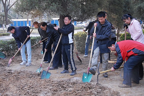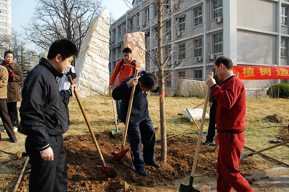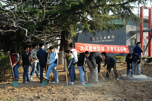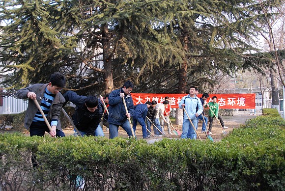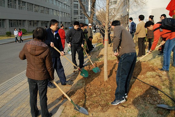 上个周末,我校部分师生员工放弃休息,积极投入到“植树造林 绿化校园”活动中来。