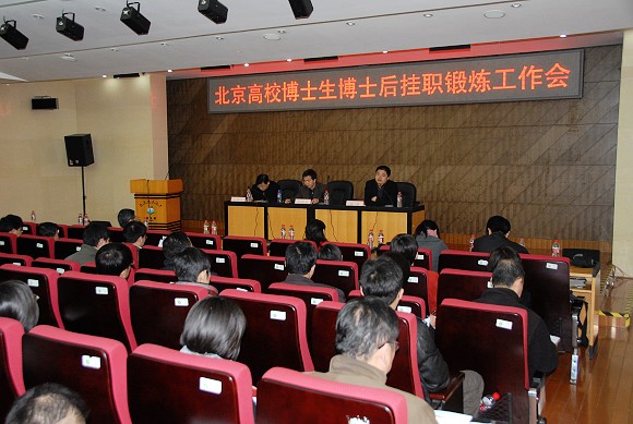 2009年3月30日下午2:30,北京高校博士生博士后挂职锻炼工作会在我校图书馆报告厅召开。此次会议由北京市教育工委主持召开,我校研究生工作部协办。北京市教育工委宣教处处长狄涛、副处长王达品,北京市委组织部调配处副处长李荣忠及50余所北京高校研究生工作部部长参加了会议。