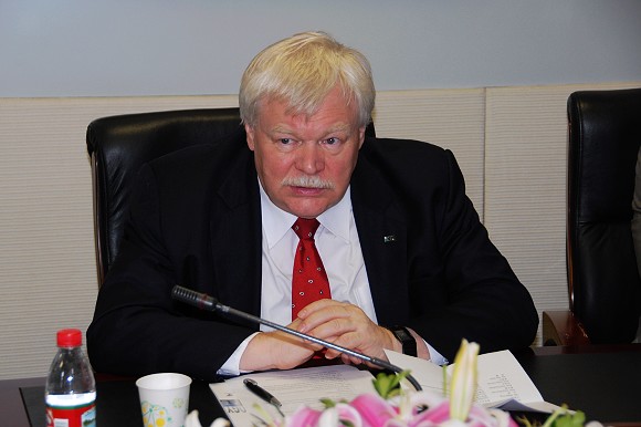 郭大成书记首先对Hippler校长访问我校表示热烈欢迎。郭书记回顾了两校自建国初期开始的交流与合作情况,并向Hippler校长一行介绍了我校近期的发展情况,尤其是新学院设置和近年来我校取得的优秀科技成果。