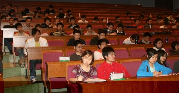 4月10日下午,理学院在中教报告厅召开了2009届毕业生形势报告会,理学院党委书记何明、院长胡长文、党委副书记副院长姜艳、副院长胡海云、全体本科和硕士、博士毕业生参加了本次报告会。报告会由党委书记何明主持。