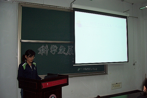 2009年4月23日晚,理学院08数硕第二党支部在理学院会议室,开展了题为“科学发展观之我见”的学习活动。活动由党支部书记王丽莹主持。