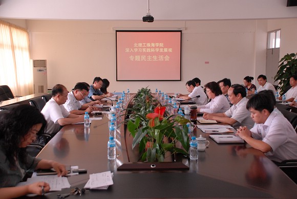 民主生活会上,珠海学院领导班子成员围绕“学习实践科学发展观”这一主题,结合分析检查阶段征求到的意见和建议,结合学院发展和个人情况,针对影响和制约学院科学发展的突出问题、师生员工反映强烈的突出问题,深入分析原因,开展批评与自我批评,提出整改措施。