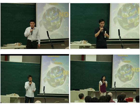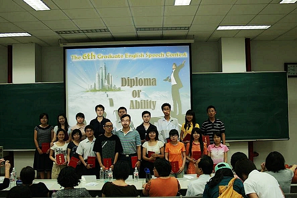 本次演讲比赛决赛分为定题演讲和回答问题两个部分。定题演讲的题目为“Diploma or Ability”(文凭还是能力?),时间为3分钟。这个话题是经过老师们充分酝酿选出的题目。在当前复杂的社会和国际形势下,这个话题很容易在研究生群体中产生共鸣和思考。