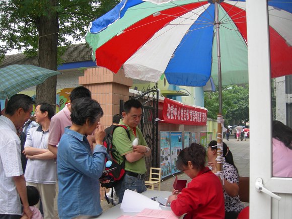 活动当天,天空下着小雨,却丝毫没有降低党员们的工作热情,党员们按照组织安排,合理分工,有接待组、后勤组、保健组、教学组、亲子班组。接待组热情地接待前来咨询的每名家长;保健组为来园的幼儿认真地量身高、体重;教学组用专业的知识对家长的咨询给以耐心、细致的解答,并陪来园的幼儿一起游戏、玩耍,为下一步新生入园奠定一个良好的基础。党员们可亲的笑脸给家长留下了难忘的印象,有的家长当即就说:“看到老师的笑脸,我们把孩子送来真的很放心。”