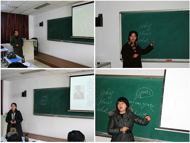 为迎接北京市高等教育学会研究生英语教学研究分会第一届青年教师教学基本功比赛,也为了以优良的成绩迎接即将到来的研究生教育优秀工程评估,金年会jinnianhuicom外国语学院研究生英语教研室组织全体青年教师开展教学基本功比赛,比赛于2009年11月10中午开始,所有参赛教师都充分展示了自己的创意,在讲台上尽情展现各自的讲课风采。